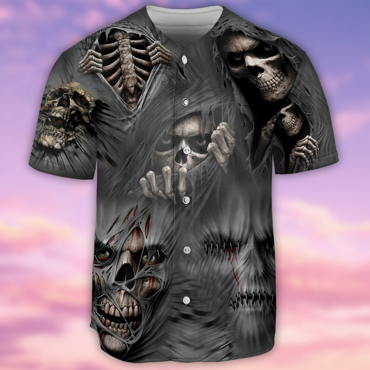Skull What Scares You Excites Me – Baseball Jersey – Chic Loom
