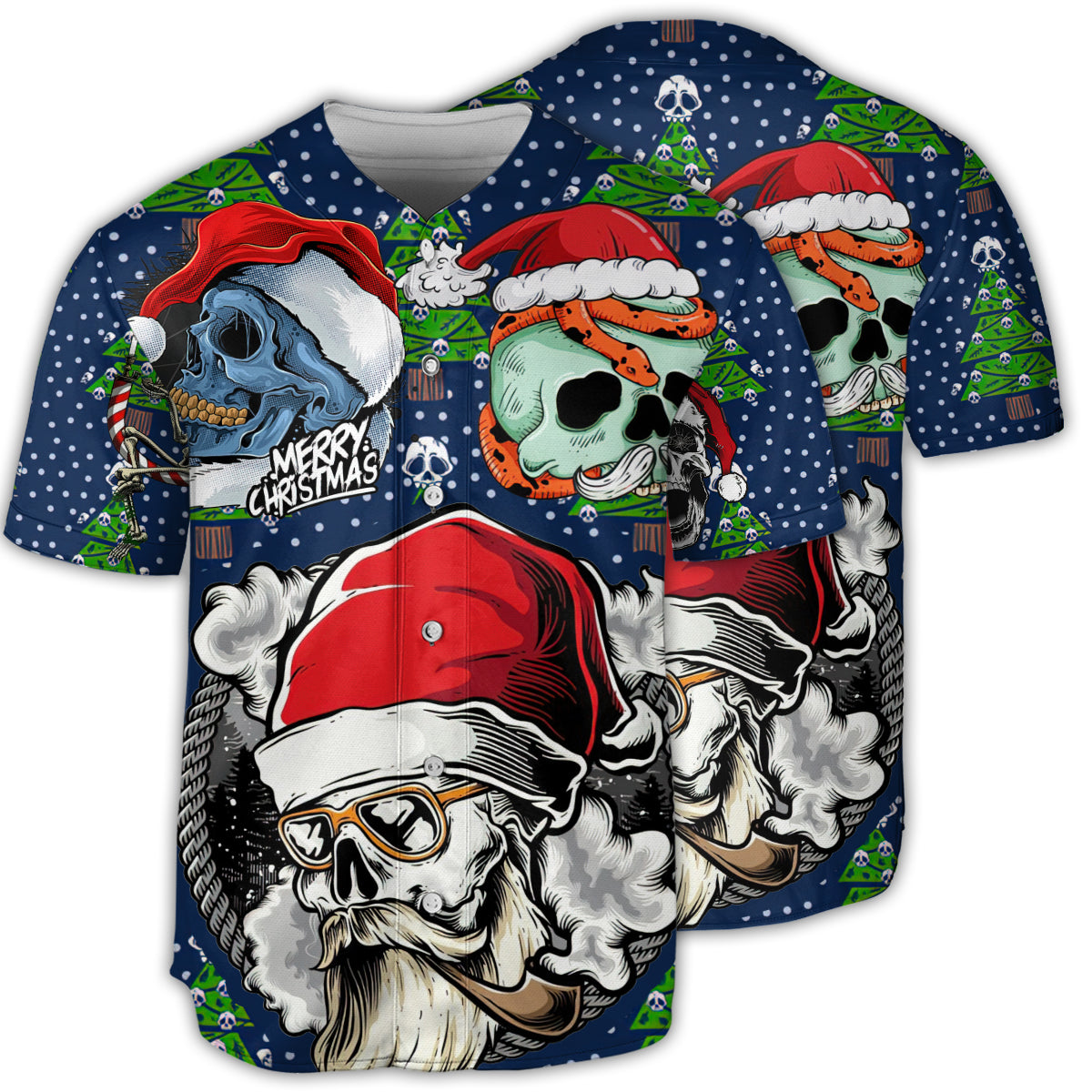 Skull With Santa Hat Merry Christmas – Baseball Jersey – Chic Loom