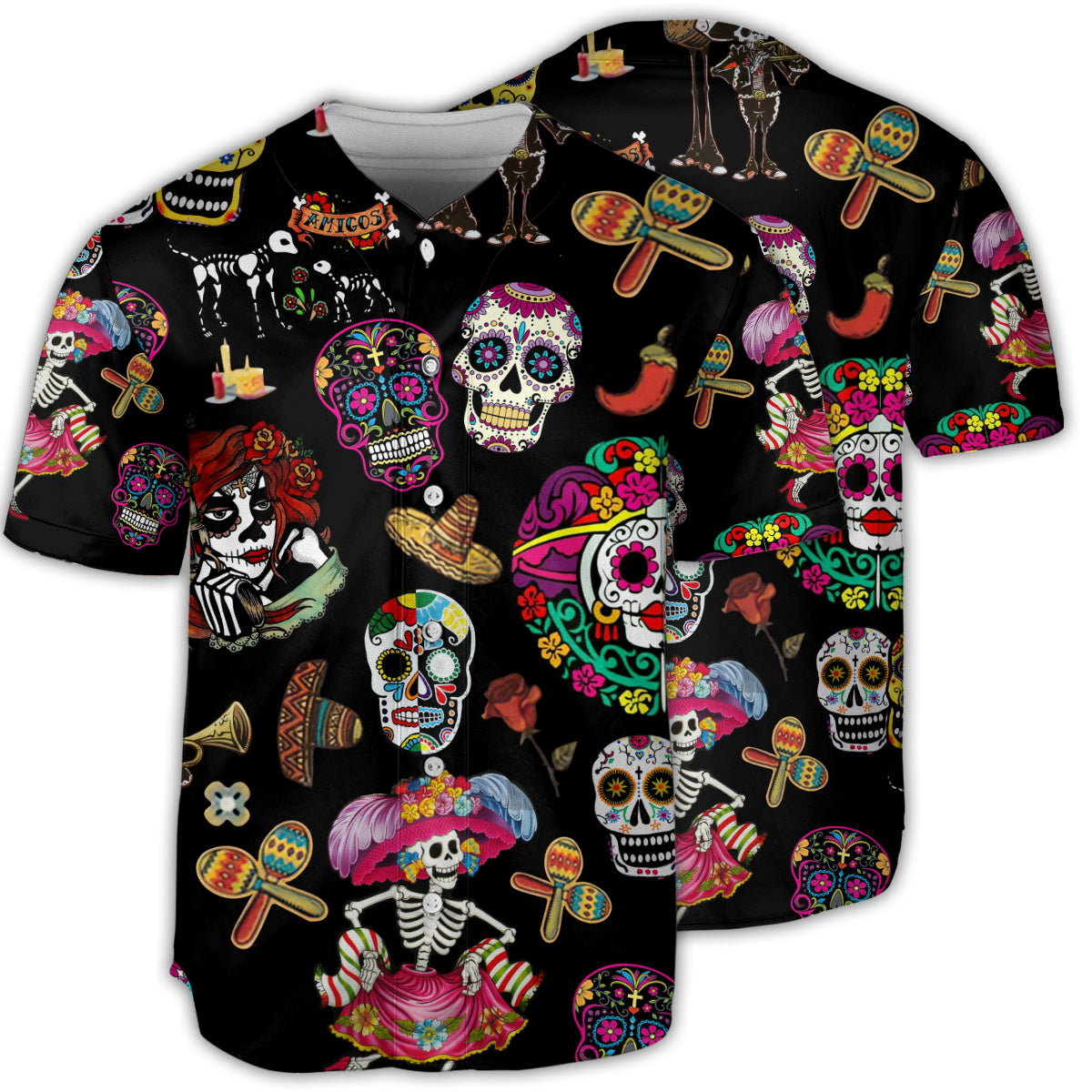 Sugar Skull Sugar Calavera Guns – Baseball Jersey – Chic Loom