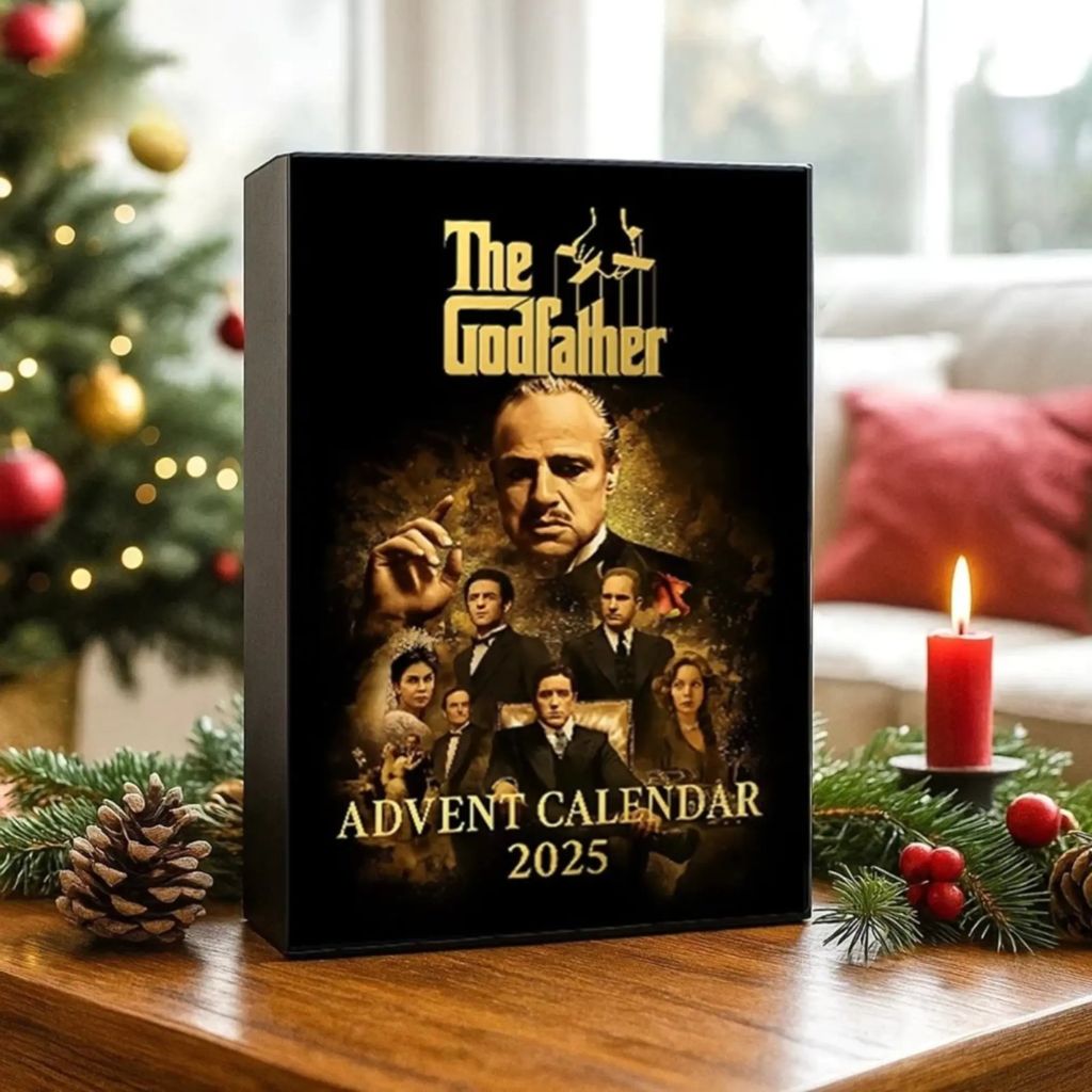 The calendar box is beautifully styled to reflect the The Godfather legacy and holiday spirit: