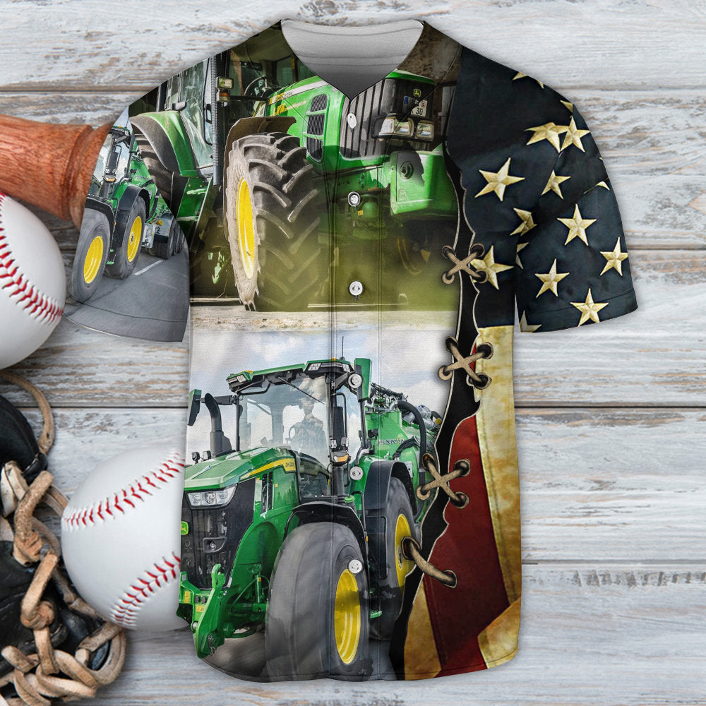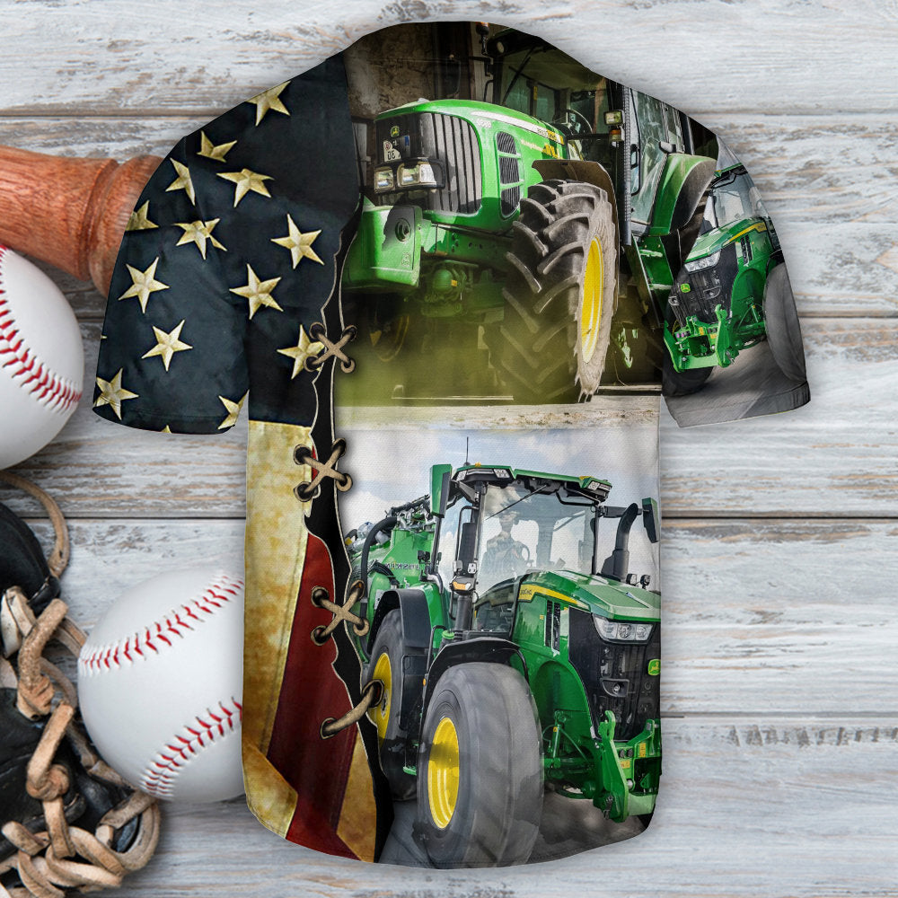 Tractor Independence Day Green Tractor US Flag – Baseball Jersey – Chic Loom