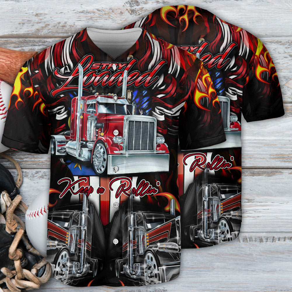Truck Keep On Rolling Truckers In Fire – Baseball Jersey – Chic Loom