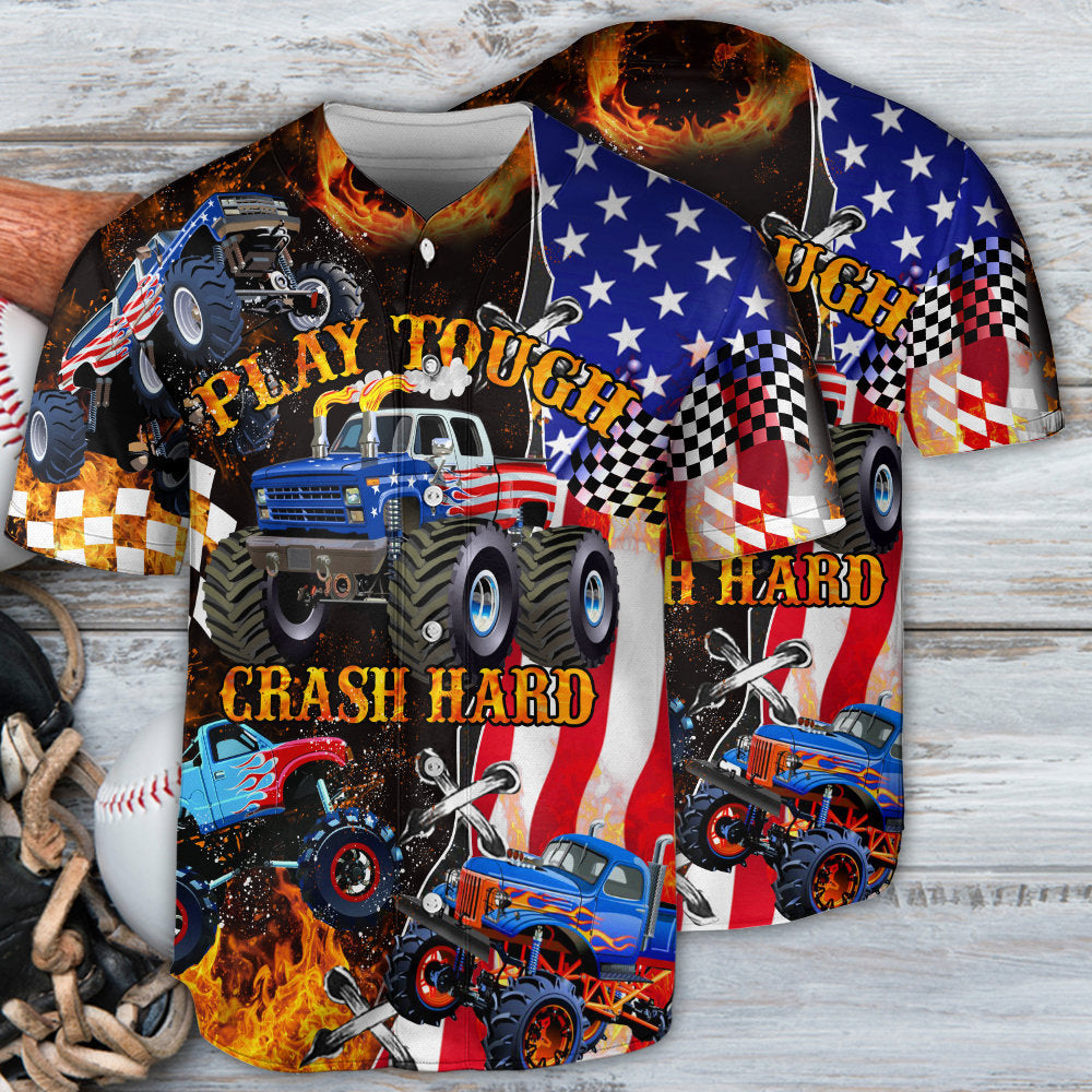 Truck Monster Fire Play Tough Crash Hard – Baseball Jersey – Chic Loom
