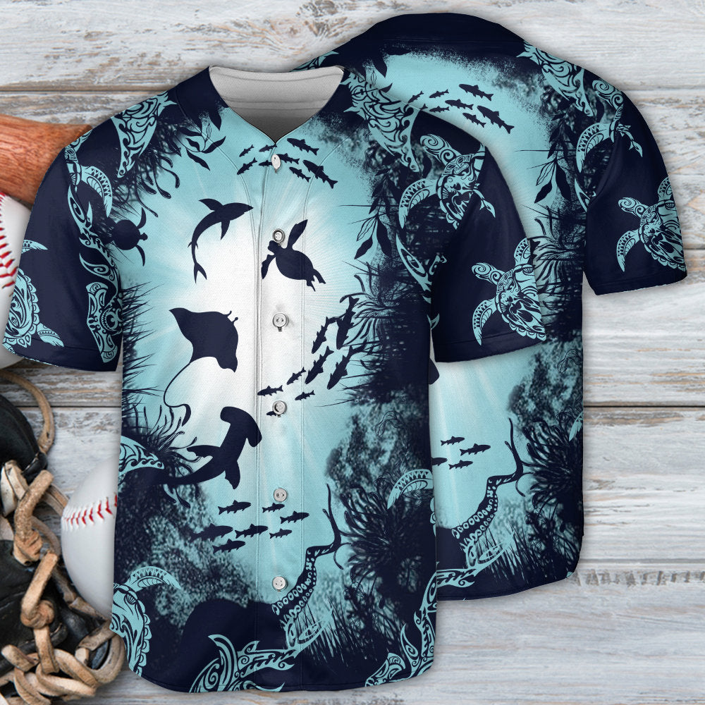 Turtle Aquarium Life Deep Blue Sea – Baseball Jersey – Chic Loom