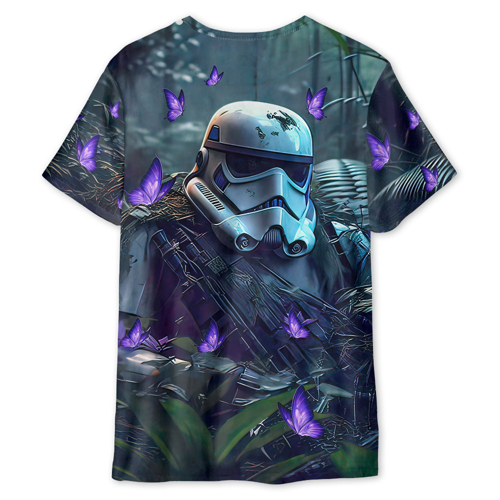 Starwars Stormtrooper In The Jungle With Purple Flowers – Unisex 3D T-shirt – Chic Loom