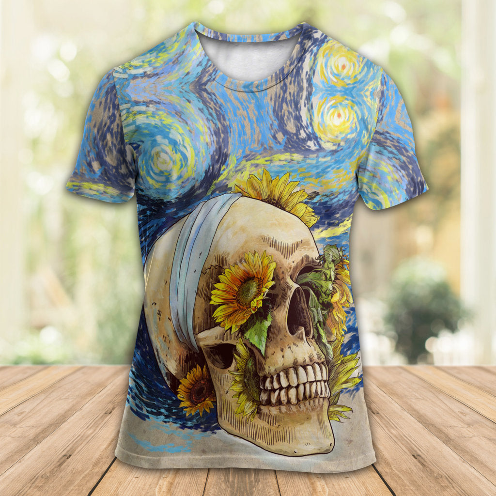 Skull And Sunflower Vintage Amazing Starry Night – 3D T-shirt – Chic Loom