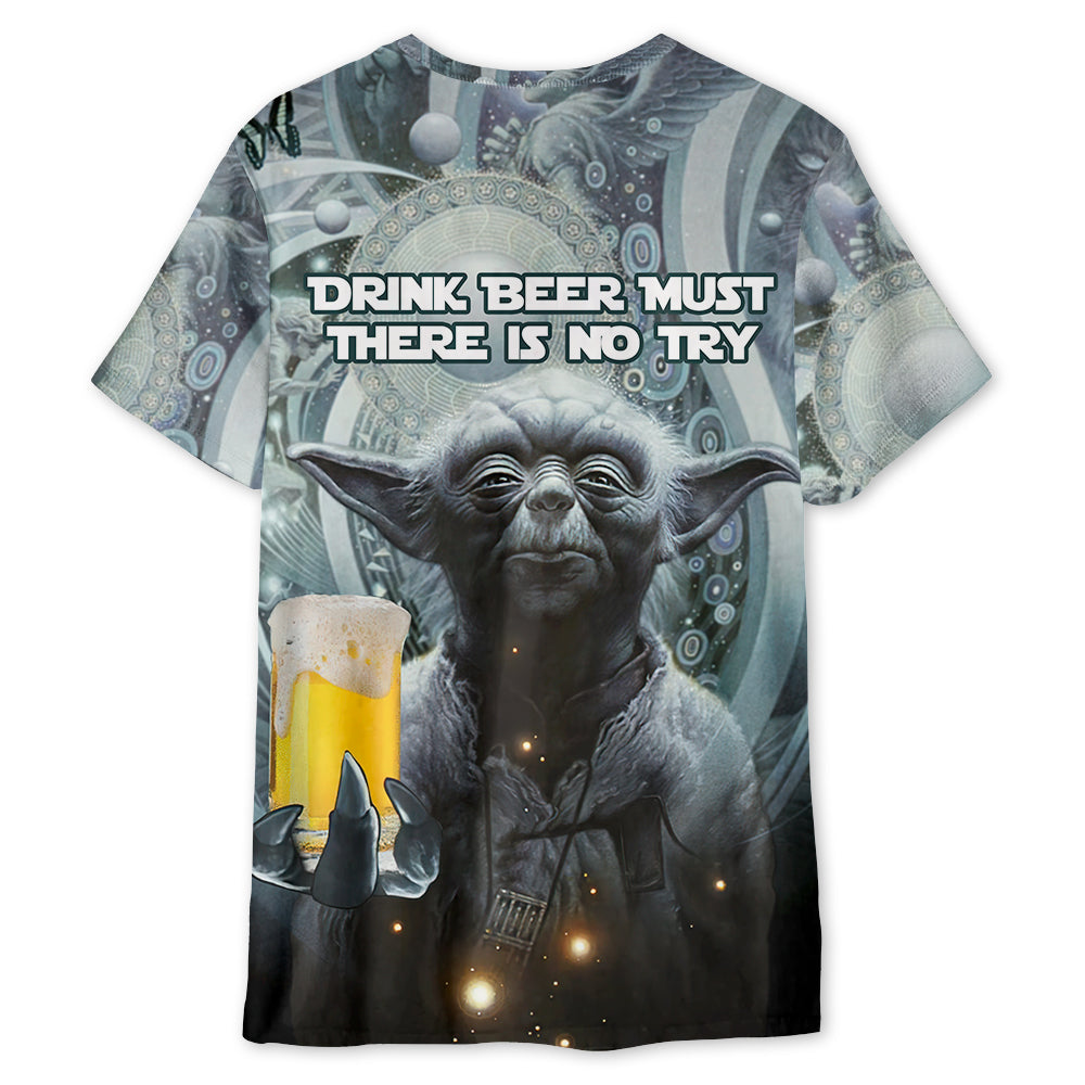 SW Yoda Drink Beer Must There Is No Try – Unisex 3D T-shirt – Chic Loom