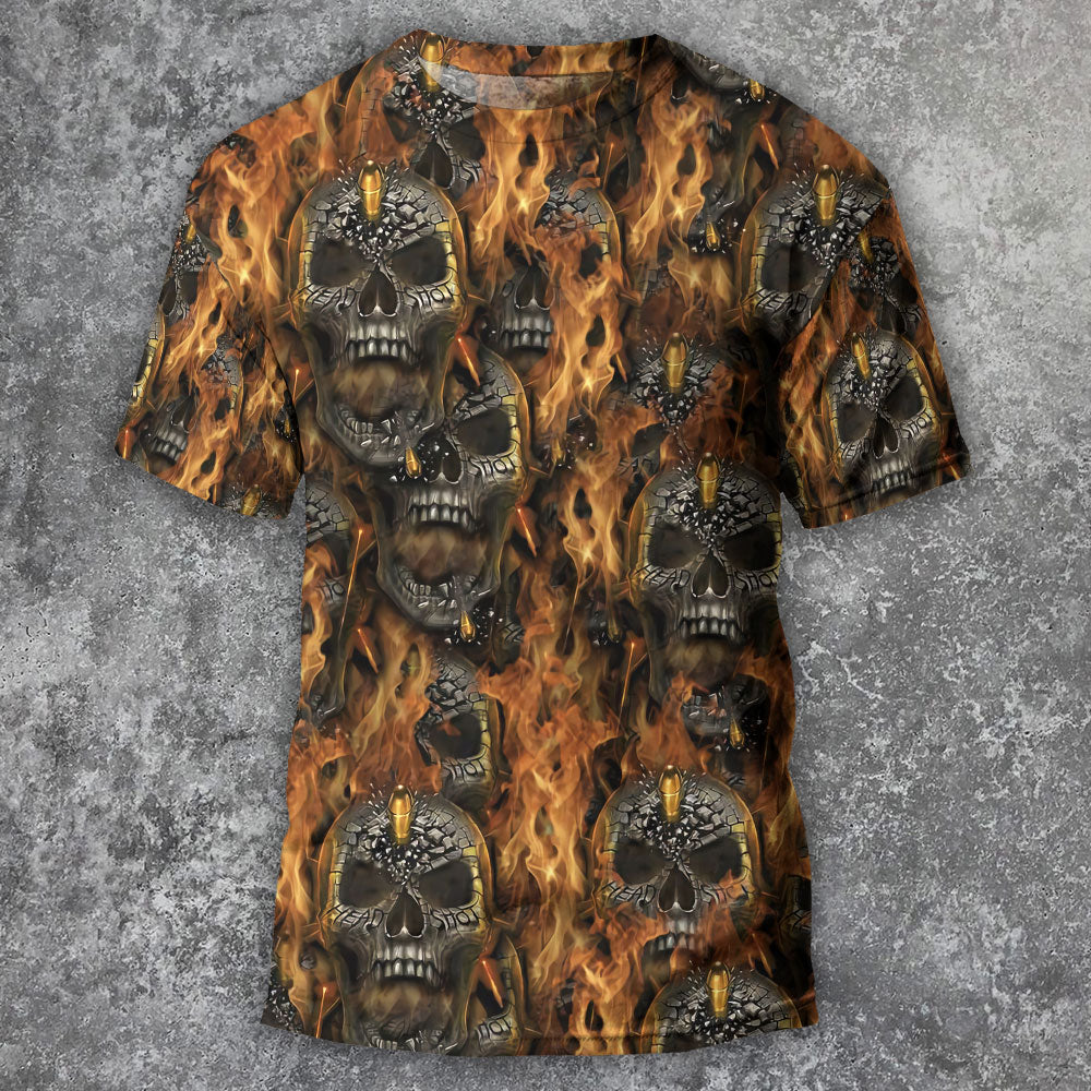 Skull Bullet Head Shot Fire – 3D T-shirt – Chic Loom