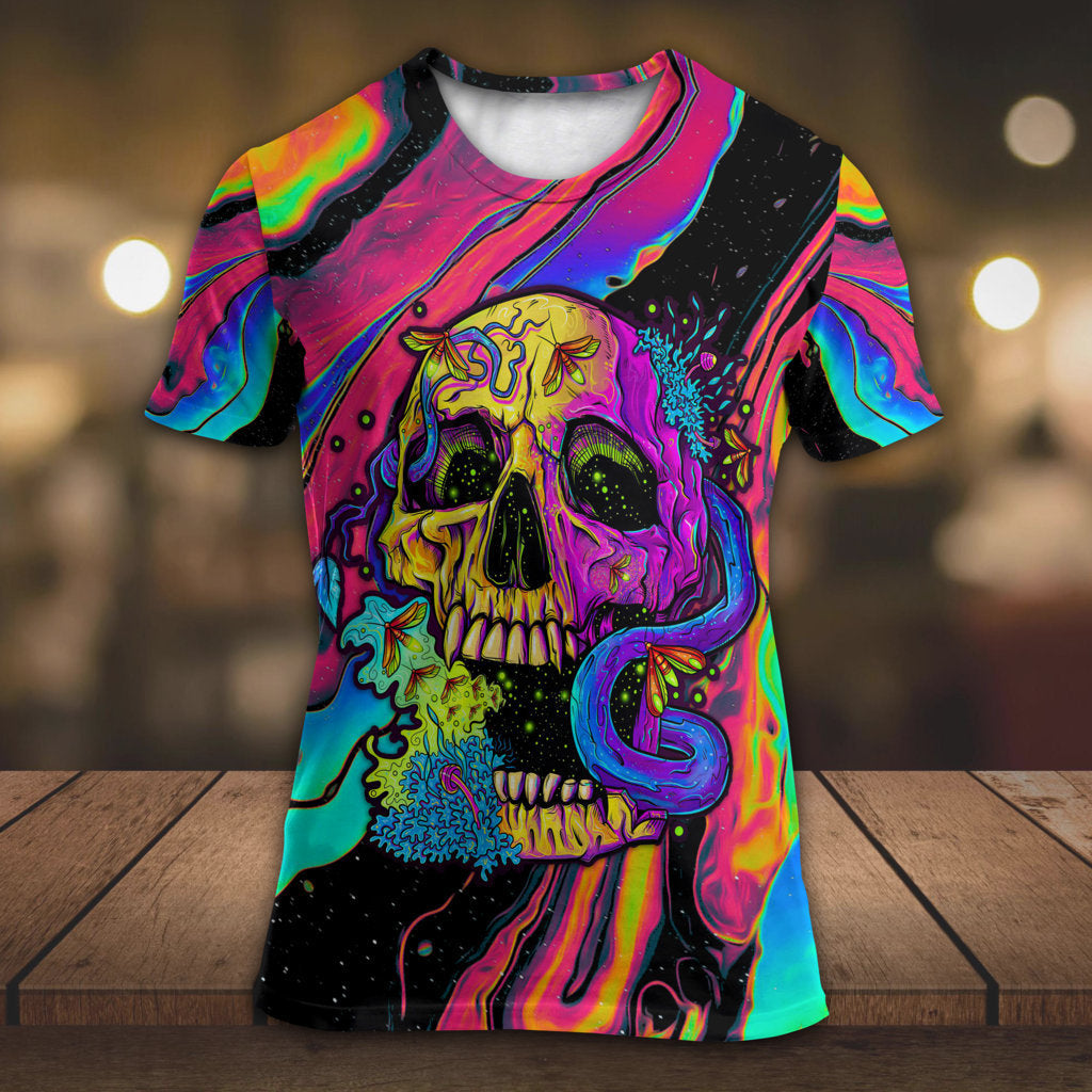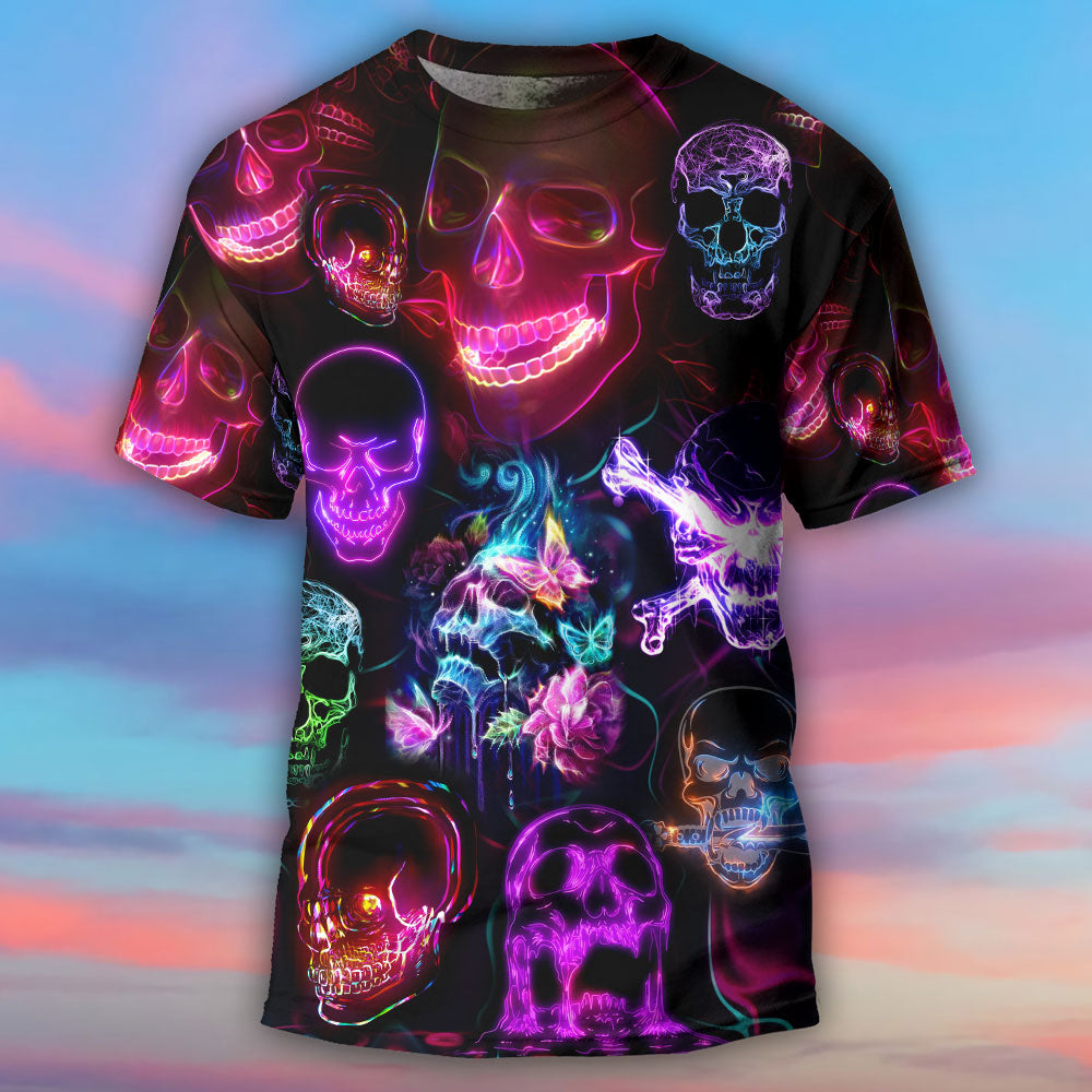 Skull Neon Art Happy Holiday – 3D T-shirt – Chic Loom