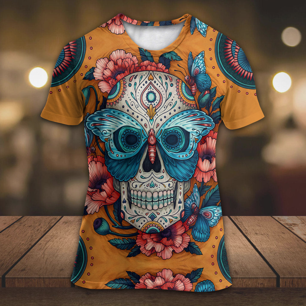 Skull And Butterfly Abstract Vintage Colorful – 3D T-shirt – Chic Loom