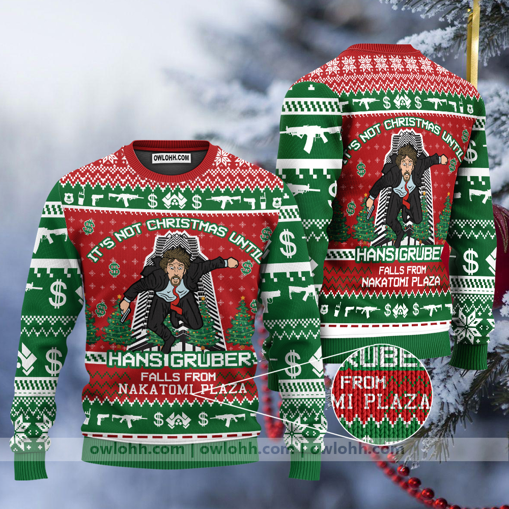 Hans Gruber Fall Nakatomi Plaza Die Hard ,Ugly Sweater Party,ugly sweater ideas- Ugly Christmas Sweater, Jumper – OwlOhh